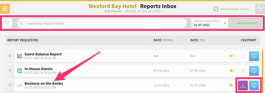 Stayntouch PMS Reports Inbox