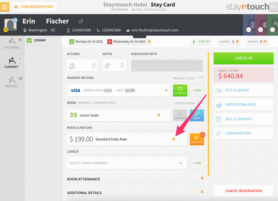 The stay card is an excellent resource for obtaining details about a guest’s stay and is integral to performing many guest-facing services, including check-in and check-out. In Stayntouch PMS, the stay card serves two purposes: