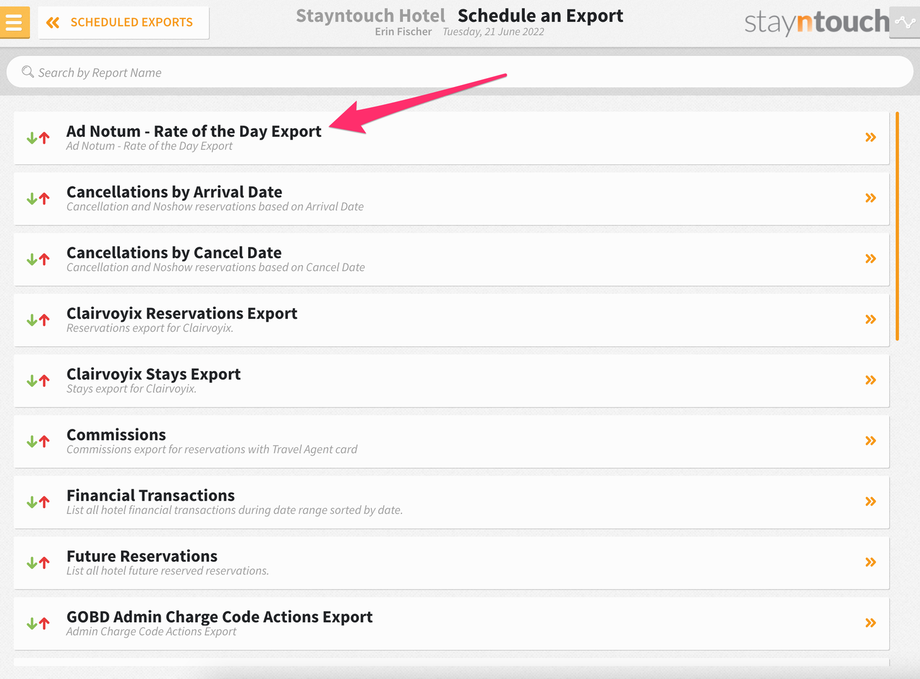 Stayntouch PMS Scheduled Export: Ad Notum – Rate of the Day Export