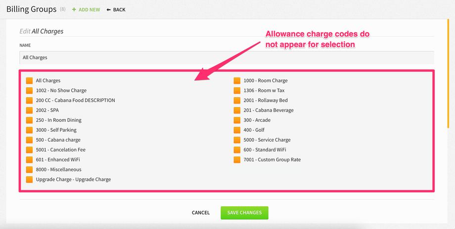 Allowance Type Charge Codes Removed From List of Charge Codes That Can Be Linked to a Billing Group