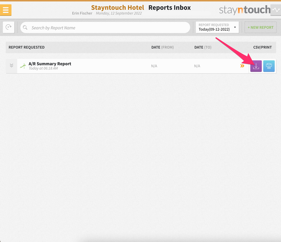 When the A/R Summary Report is generated from Reports > New Report > A/R Summary Report, it can now be exported via CSV from Reports > Reports Inbox.