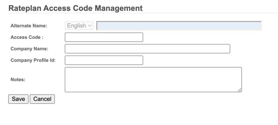 - Click Add New Access Code for [Rate Plan Name].