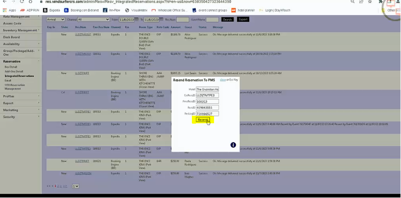 Stayntouch PMS Manually Resync Individual Reservations in Windsurfer