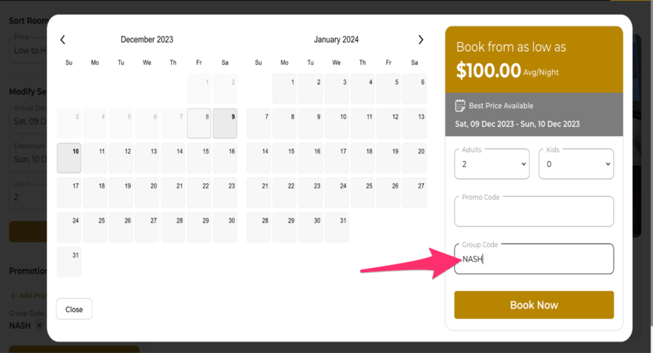If a rate is not marked as PUBLIC, it will not show for regular customers to book. From here, the group code set up in Stayntouch PMS can be used on the website to find the group rooms.