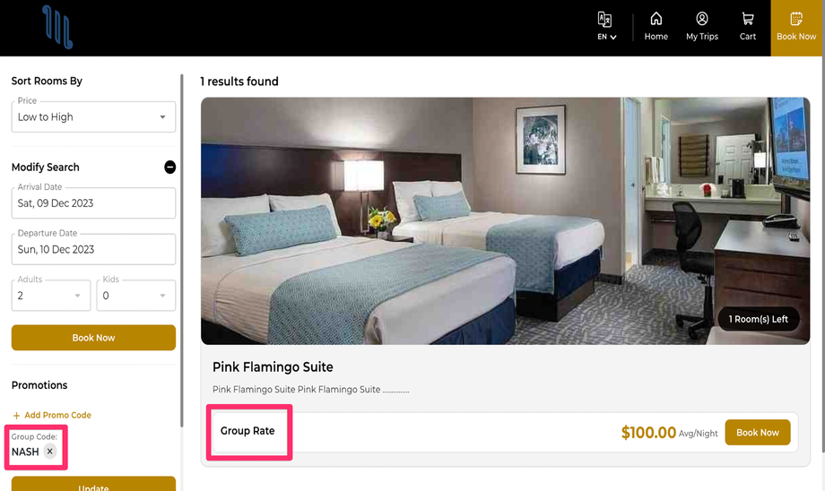 If a Custom Group Rate is set up for your property, this functionality also works with the IBE. Once the group is set up, the rate will display on Stayntouch IBE immediately.