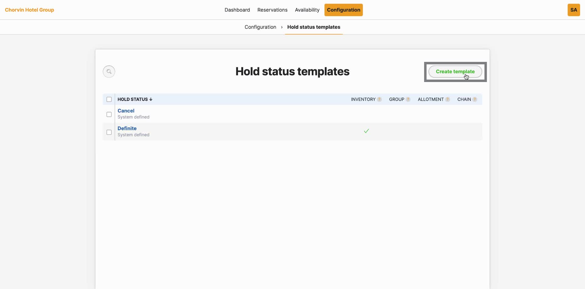 Multi-Property users can configure cancellation policies from Configuration > Rates > Rules > Cancellations by selecting Create template.