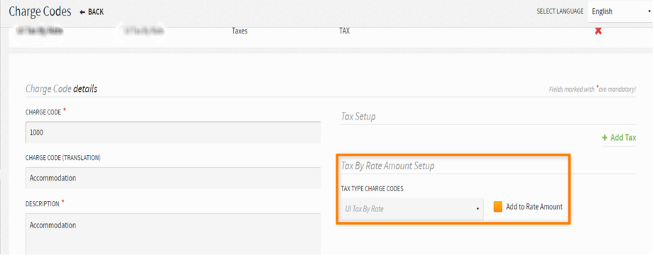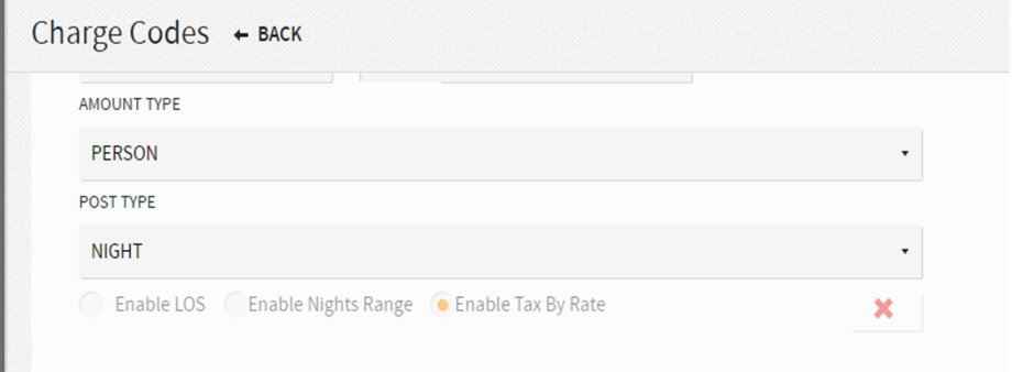 Once the tax by rate amount tax charge code is linked to the accommodation charge code, it can be set to either show the tax calculated as a separate line item on the Guest Bill, or add the tax amount calculated to the rate amount. Please note, tax by rate amount will always be calculated as an exclusive tax, and linking the tax by rate amount will link to the new section on the parent charge code. This section will only be displayed if the TAX BY RATE AMOUNT setting is enabled.