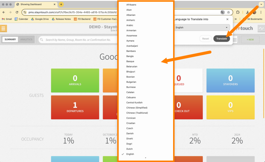 Stayntouch PMS Use Google Chrome To Translate Stayntouch PMS