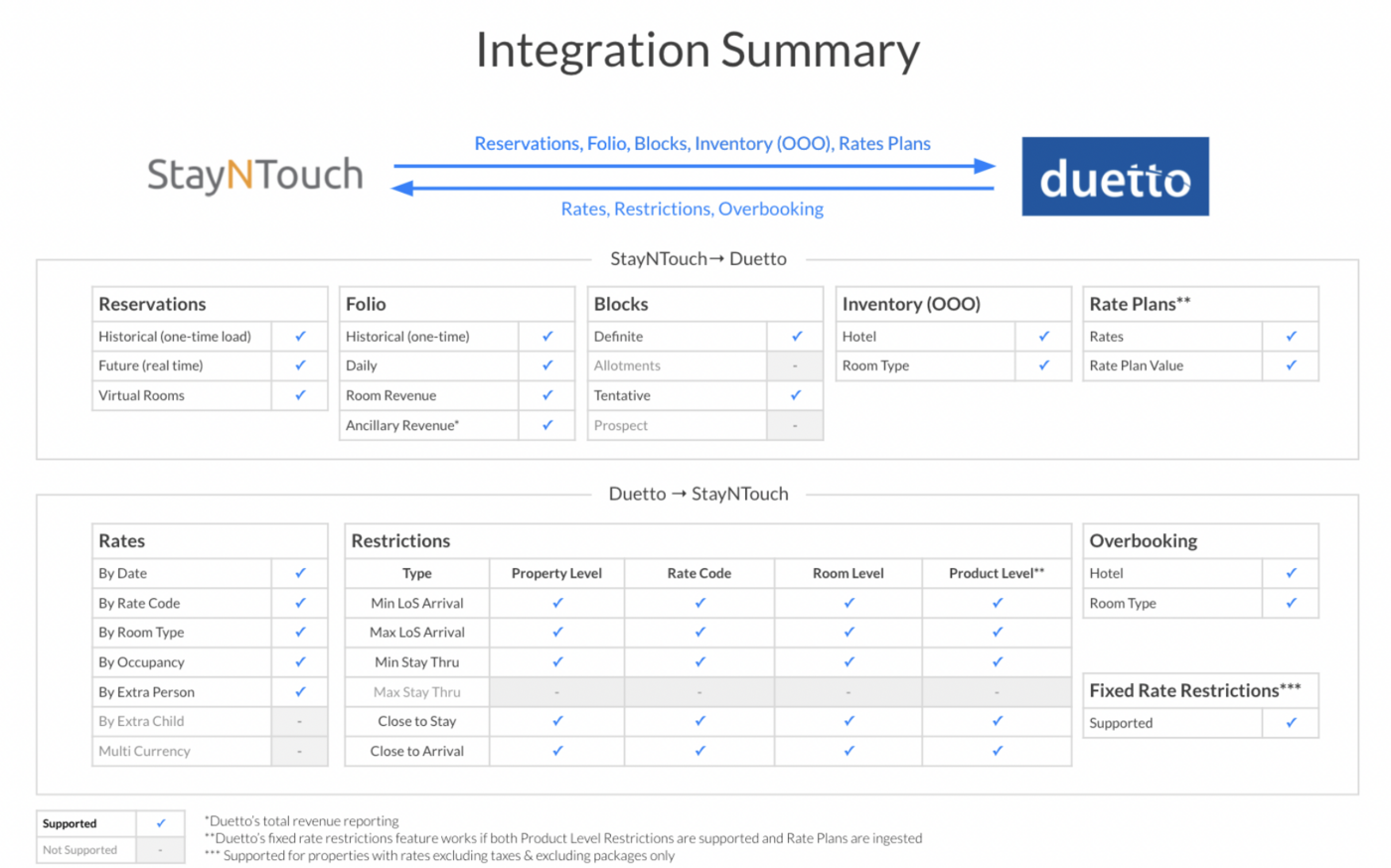 The below graphic offers an illustration of the synchronization process between Stayntouch PMS and Duetto. To activate this integration for your property, please contact Customer Support.
