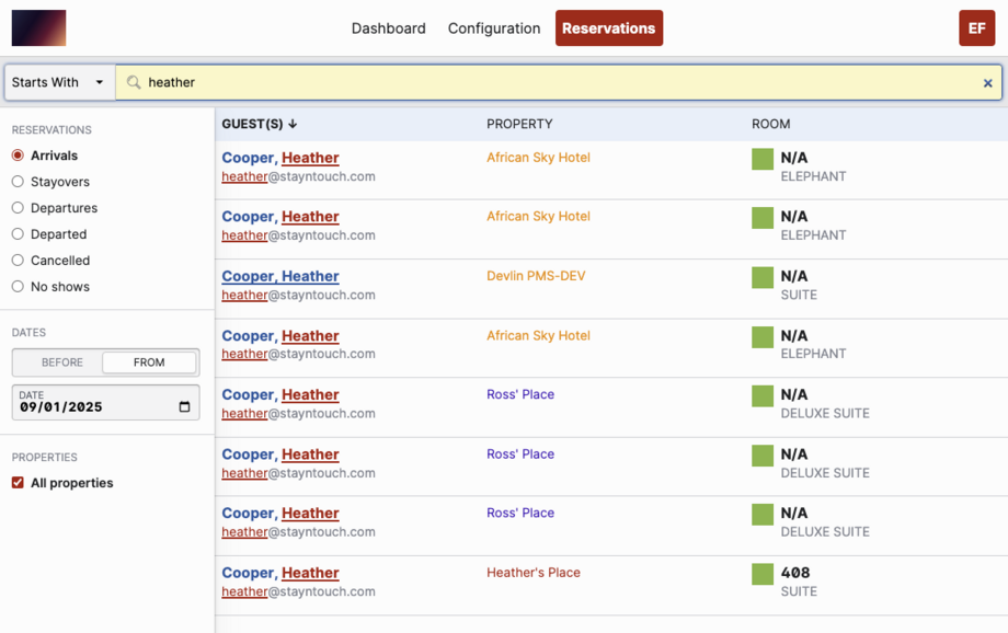 - Multi-Property users can now search for past, present, and future reservations across all hotels in a chain from the new Reservations tab!