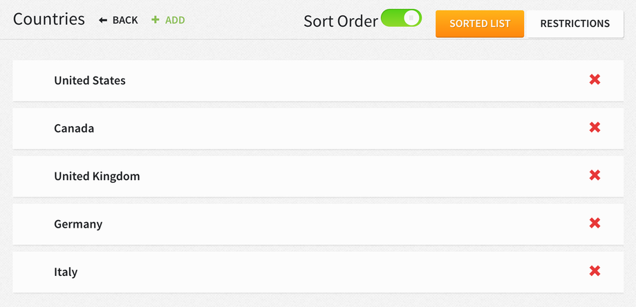 Did you know that you can group the most important countries at the top of a list of values and restrict certain countries by area?