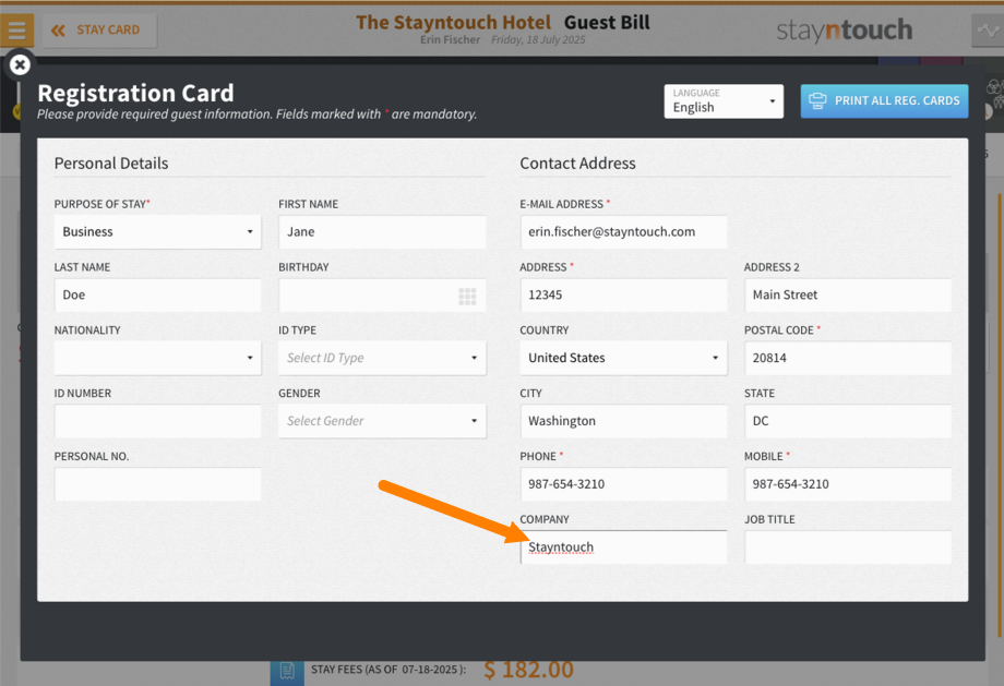 Please note, the new registration card will first be available to pilot. If you’re interested in piloting this feature at your property, please contact Customer Support.