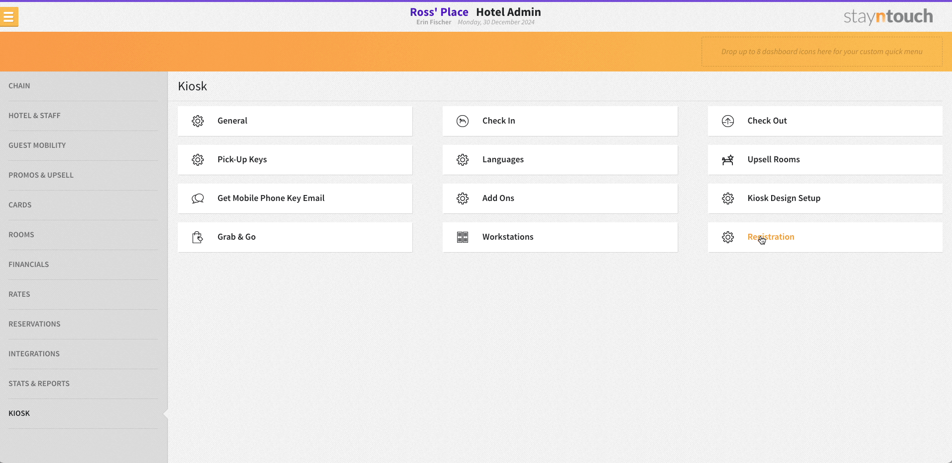 To protect guest privacy and streamline front desk operations, the kiosk registration card now automatically clears inactive sessions: