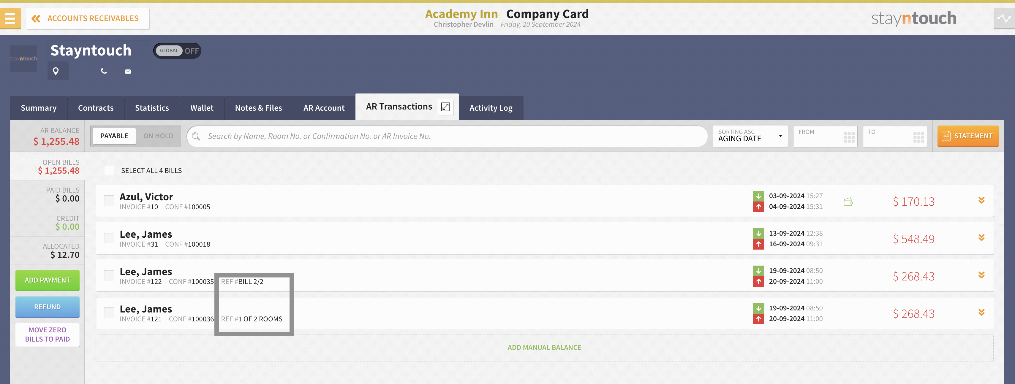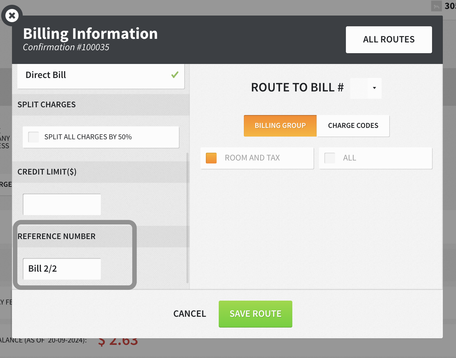 When routing charges to accounts receivable, it can be helpful to include reference information specific to that bill. This could be a Purchase Order reconciliation number, an internal reference for the paying party, or any other value that helps save time.