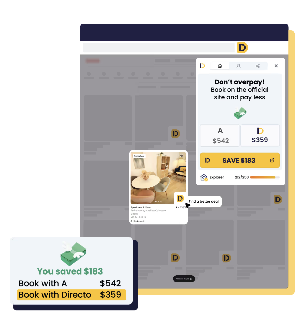 Directo provides redirection of the booking journey from the OTA's website to the hotel’s website to allow direct booking. The solution is a browser copilot that connects travelers with property owners, helping guests get rewarded for booking directly while empowering owners to regain control. The solution uses a Google extension that allows users to find alternative direct deals as they browse travel sites. Directo targets hoteliers and property managers who have a booking-enabled direct website. This is a global solution, ideal for hotels.
