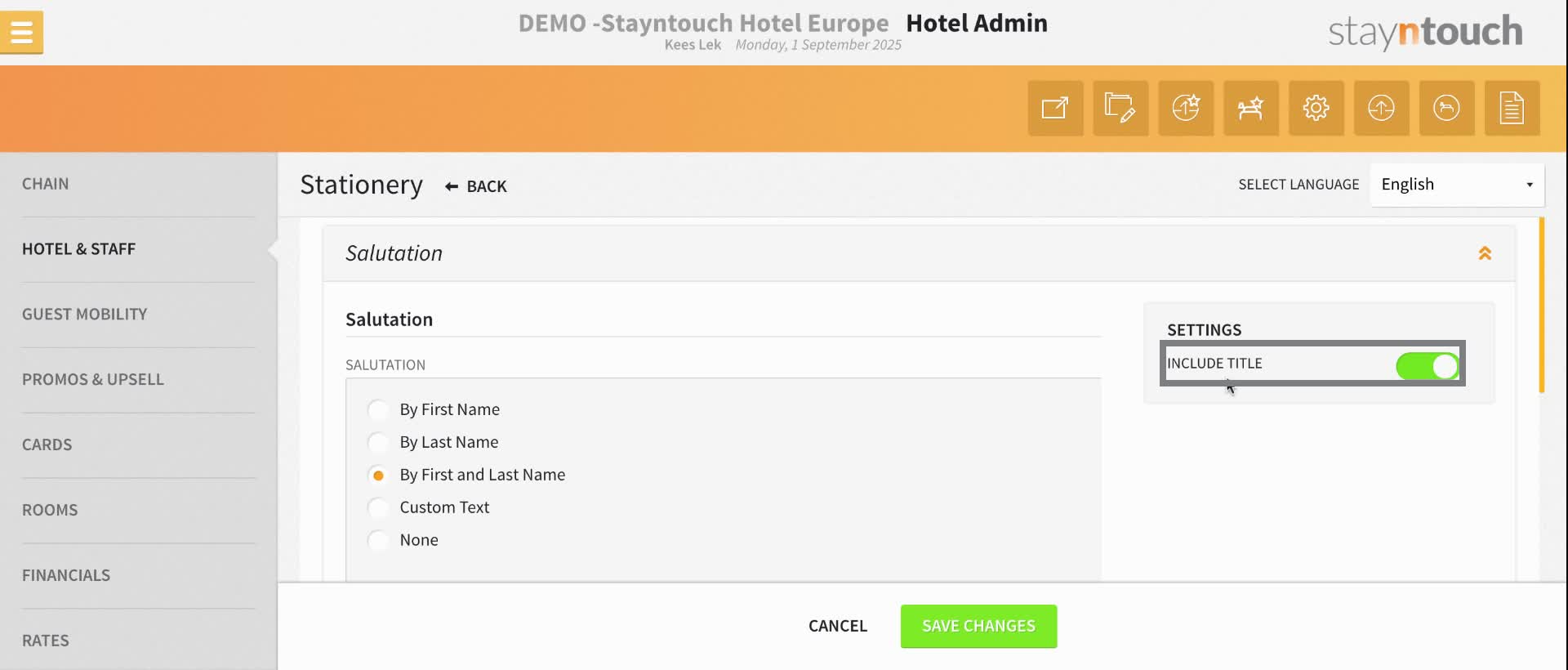 In the settings section, turn on the INCLUDE TITLE toggle if you want to include the guest's title. Be mindful there is not always an entry in this field.