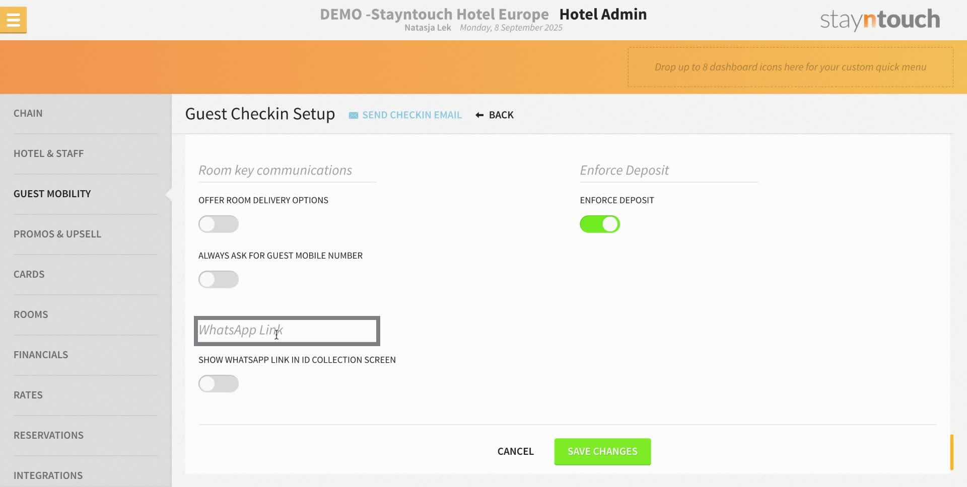 Stayntouch PMS          Configure Stayntouch Guest Mobility Check-In Settings