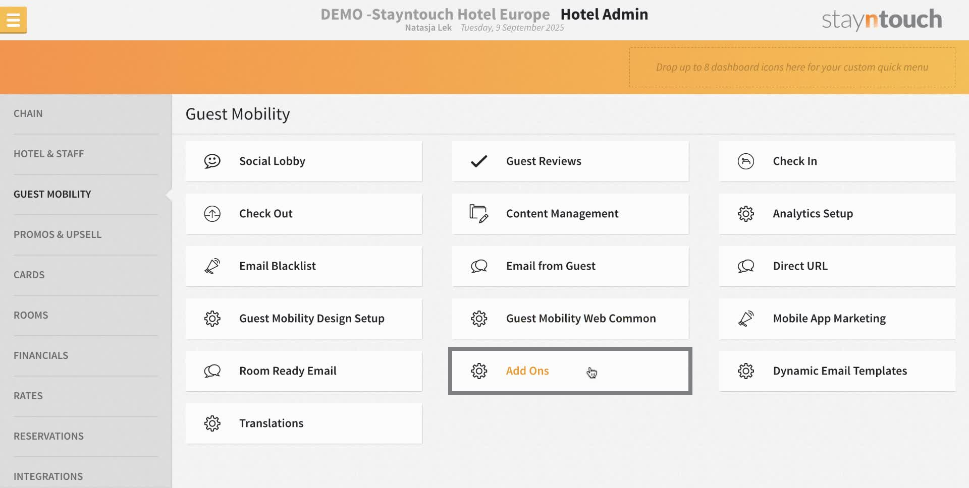 Enable Add-Ons For Upsell Via Stayntouch Guest Mobility