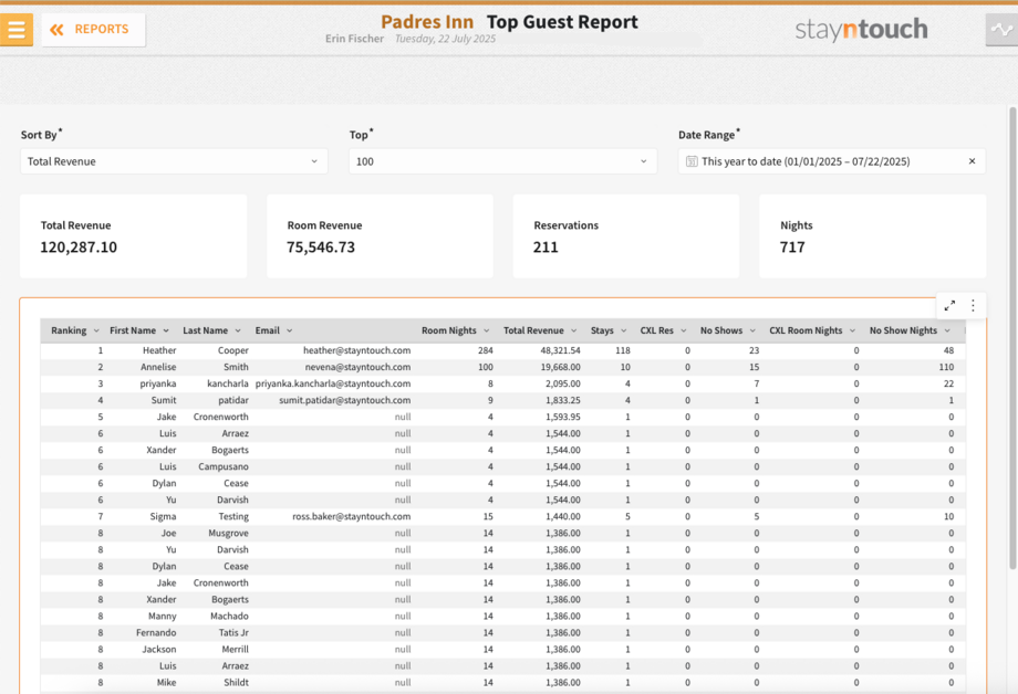 We’re excited to introduce a new Top 100 Guest Report! The Top 100 Guest Report can be run from Reports > New Report > Top Guest Report. Read more here.