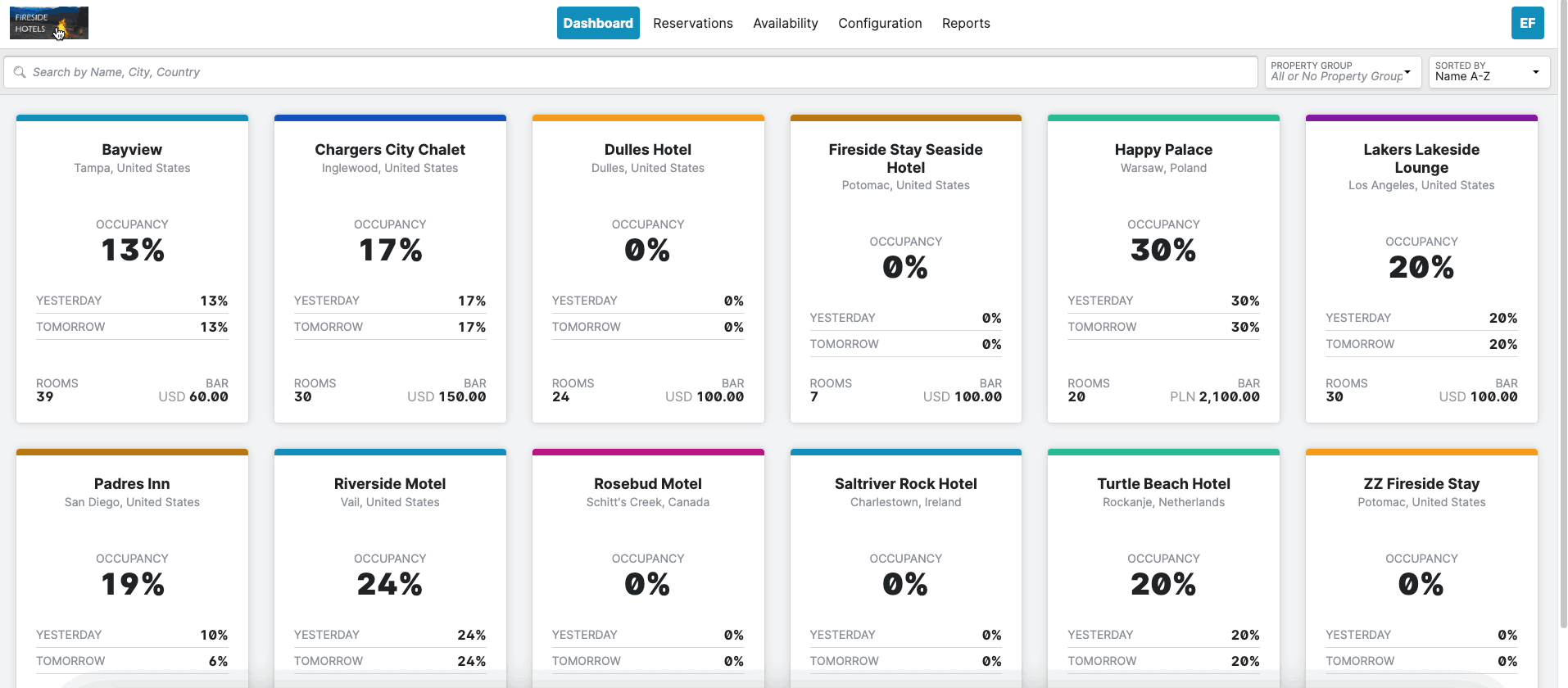 On the Multi-Property dashboard, you will notice property tiles for each property within a chain. The Multi-Property dashboard sorts properties according to their alternate name or display name. Property tiles will appear as follows: