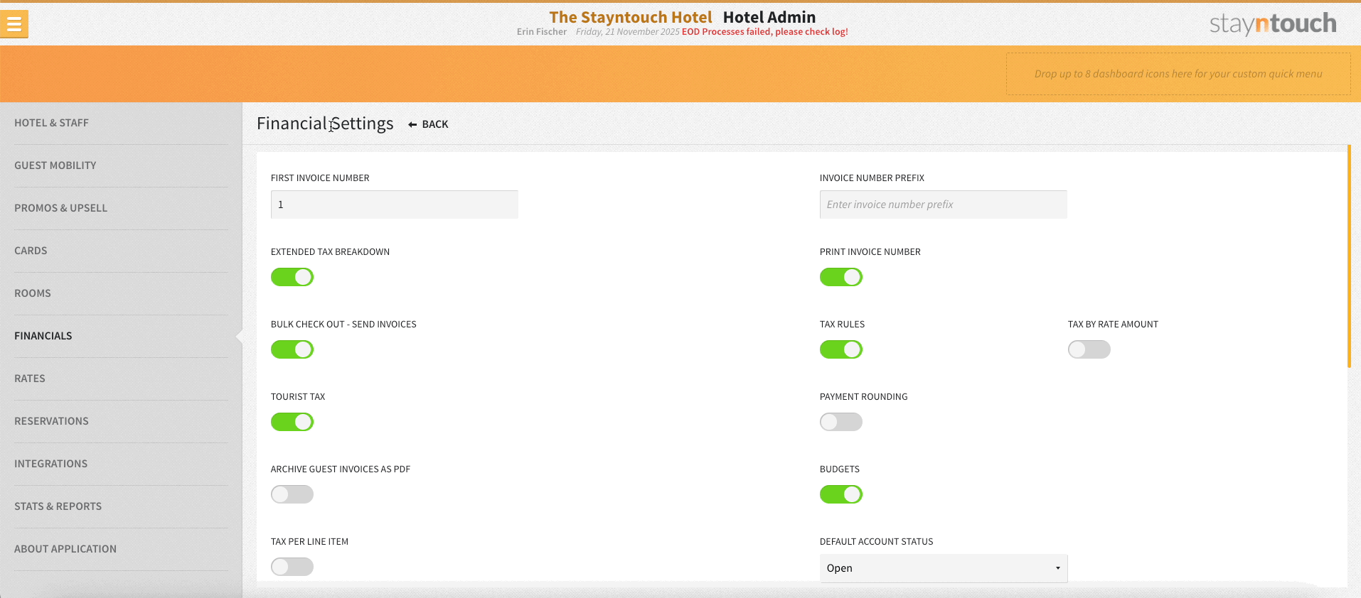 We’ve relocated the Auto Charge section from Settings > Hotel & Staff > Settings & Parameters to Settings > Financials > Financial Settings for a cleaner, more intuitive workflow. To enable automatic deposit collection using the card on file, simply turn on both DEPOSIT COLLECTION and AUTO-CHARGE DEPOSIT WITH CARD ON FILE. Once enabled, deposits will be automatically collected based on the deposit request linked to the rate—no extra steps needed.