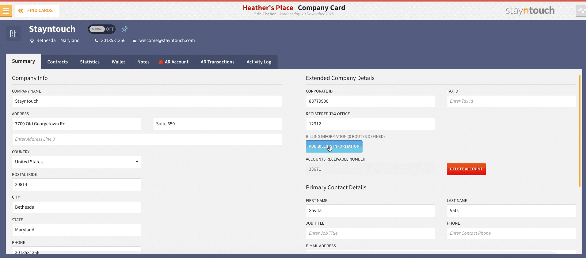 You can now link multiple Virtual Credit Card (VCC) name variations to a single billing instruction, streamlining automated reservation creation when VCC details are received from channel managers and OTAs. Stayntouch PMS now validates against all linked name variations, reducing manual intervention for VCC reservations.
