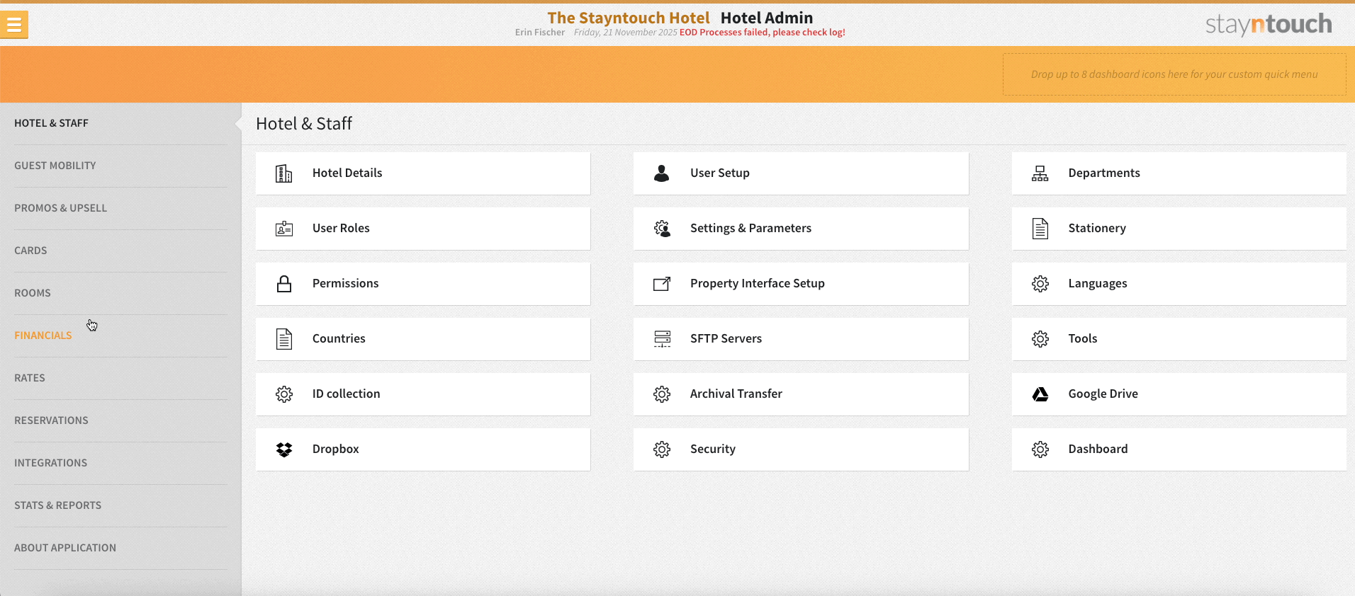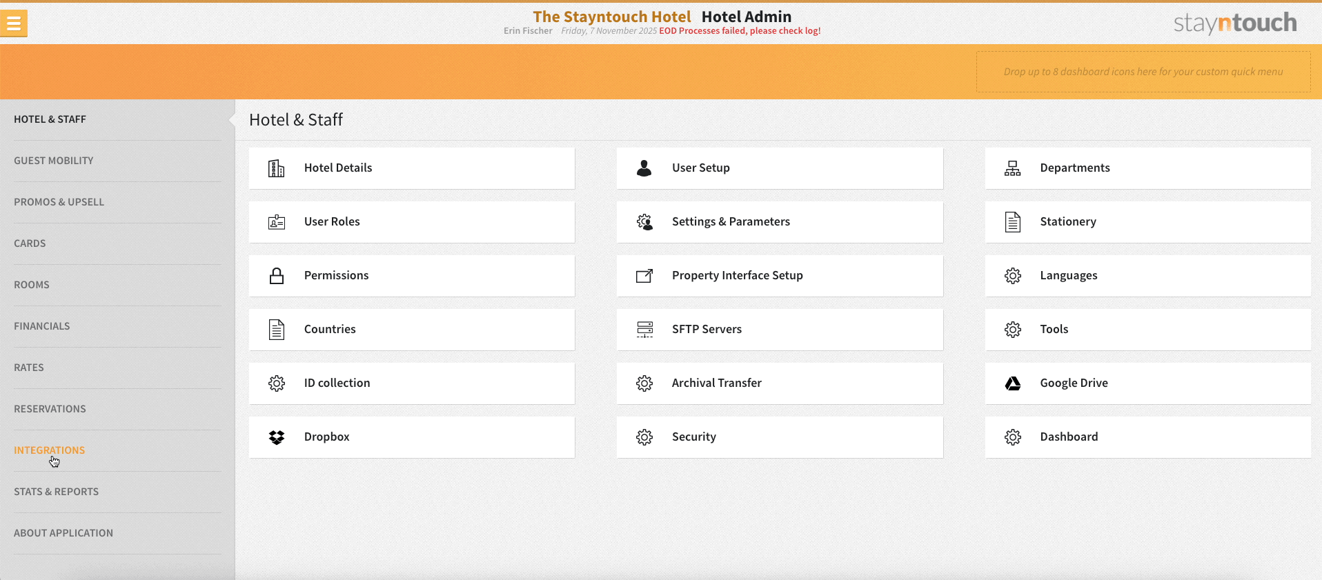 Stayntouch PMS now integrates with the following new vendors. For more information, please contact your Client Success Manager or Customer Support. Below is a list of the newly supported integration partners with links to supporting documentation detailing the integration with each vendor: