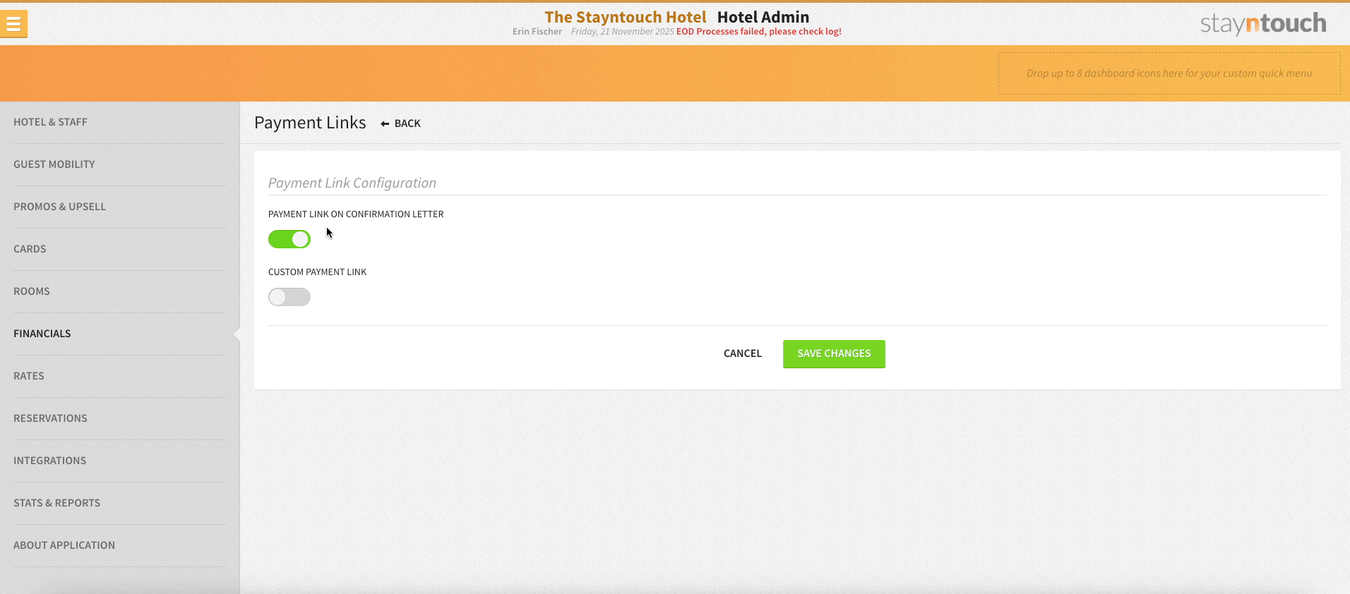 - CUSTOM PAYMENT LINK: Activate this to generate custom payment links for individual reservations and accounts, giving you flexibility and control over payments.