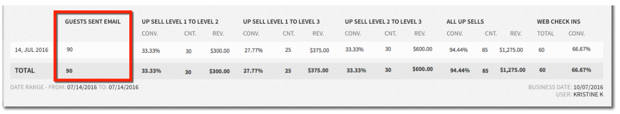 As a result, the total number of Guests Sent Email will equal 50, because at the start of the process we had 50 email addresses on file. And the Guest Sent Email column only indicates the number of reservations with a valid email address AND an arrival date that matches the date specified.